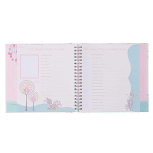 Our Baby Girl’s First Year Memory Bookcaptures the precious memories of baby’s first year. It offers space to record memorable moments and milestones like her first steps and her first tooth, scrapbooking pages for photographs, and a special keepsake pocket for baby’s hospital bracelet or a lock of hair from her first haircut.